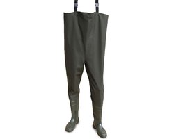 При изготовлении полукомбинезона рыбацкого используется легкая, прочная и водонепроницаемая ПВХ-ткань и высокие сапоги мужские с подошвой на толстом и глубоком протекторе. Шов соединения и швы кроя сварены высокочастотными токами, что гарантирует отсутствия протекания воды.