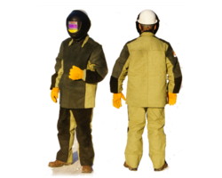 Костюм сварщика со спилком. Комбинированный костюм, брезентовый огнезащитный со спилком предназначен для защиты рабочего от брызг искр, расплавленного металла, теплового излучения и повышенных температур при сварке.