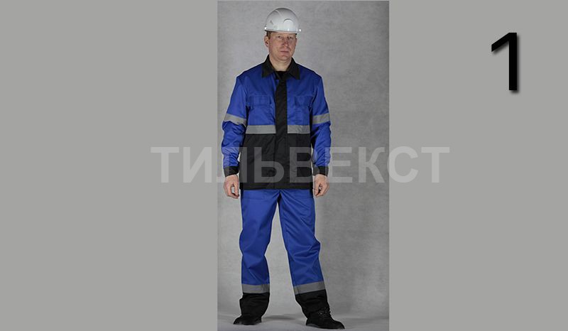 Куртка прямая удлиненная, с застёжкой на молнию, два нагрудных накладных кармана с клапанами и два боковых накладных кармана, светоотражающая лента 50 мм по спине, груди и рукавам. Брюки с двумя накладными карманами, пояс на резинке, гульфик с застежкой на молнию, светоотражающая лента 50 мм по низу брюк.(Цвет основной ткани и контрастной отделки по желанию заказчика).