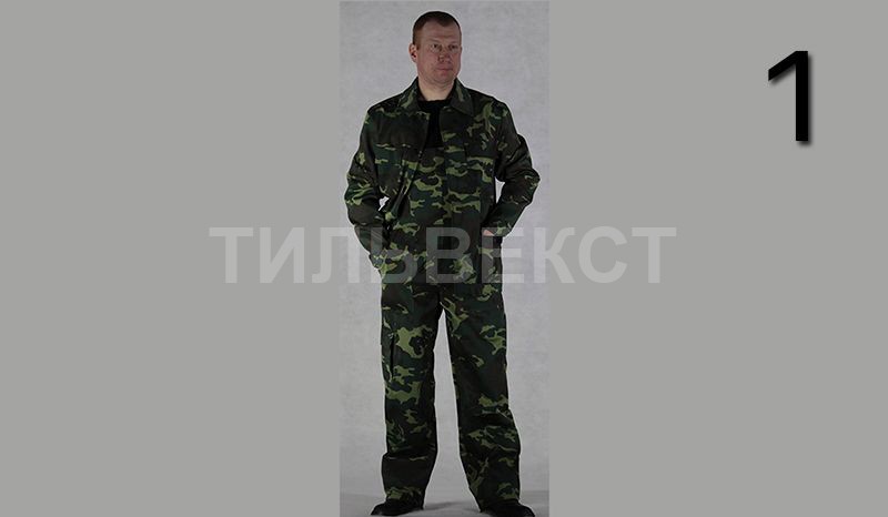 Куртка прямая удлиненная, с потайной застёжкой на пуговицы , четыре накладных кармана с клапанами. Полукомбинезон на бретелях с эластичной тесьмой и застёжкой на фастекс, с накладными боковыми и нагрудным карманами. Гульфик с застежкой на молнию.